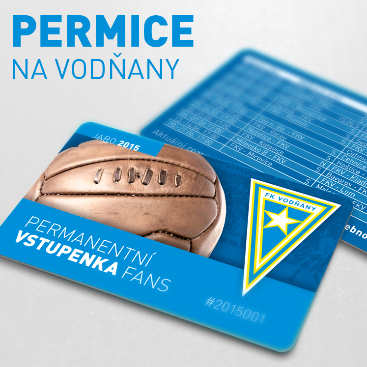 Při návrhu jsme ale mysleli také na funkčnost permanentky a tomu jsme tedy přizpůsobili její velikost. Zalaminovaná kartička má rozměry kreditní karty, takže si bez problémů najde místo ve vaší peněžence. Věříme, že možnosti zakoupit permanentní vstupenku využijete a podpoříte tak vodňanský fotbal.